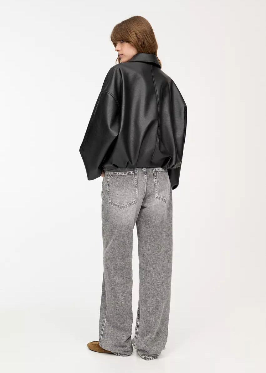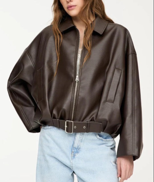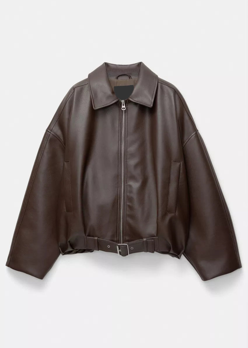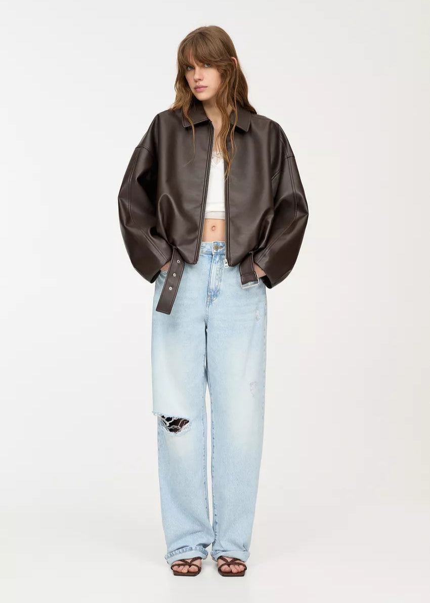 Vintage-Inspired Leather Bomber Jacket